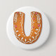 Gingerbread Letter U Monogram Holiday Cookie 7.5 Cm Round Badge