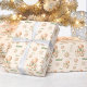 Cute Christmas paper in green and beige with a cute gingerbread man, gingerbread cookies and faux golden little snowflakes. Easily personalise the name - Kate Eden Art