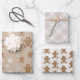 Three coordinating patterns for the winter holiday season: gingerbread men cookies and snowflakes on a rich brown background and a neutral plaid. Great for wrapping up baked goods this Christmas.