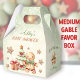 A little man is on the way! Christmas boy baby shower medium gable favour boxes with an adorable gingerbread man, Christmas tree, gift and gingerbread stars all in classic green, red and beige. You can choose from 3 sizes of these gable favour boxes. Easily personalise the text. - Kate Eden Art