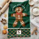 Celebrate the holiday season with this custom gingerbread man Merry Christmas kitchen towel. Featuring a cute gingerbread man with a red bow tie, a festive "Merry Christmas" greeting, and a personalised monogram on a green background, this towel adds a fun and festive touch to your kitchen decor. Perfect for gifting or adding a personalised touch to your holiday home.