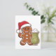 Gingerbread Man Holding Matcha Drink Christmas Announcement Postcard