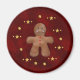 This festive Christmas magnet features a jolly gingerbread man surrounded by small golden stars and balls. It's the perfect way to add a touch of holiday cheer to your fridge or any other metal surface. The magnet is made of high-quality materials and is built to last. Whether you're looking for a unique gift for a friend or family member, or simply want to add some holiday magic to your own home, the 'Gingerbread Man Magic' Christmas magnet is the perfect choice.