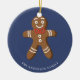 Gingerbread Man Navy Polka Dot Christmas Photo Ceramic Ornament