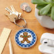 Gingerbread Man on Blue White Snowflakes Pattern Key Ring