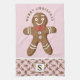 Gingerbread Man Pink Monogram Merry Christmas Tea Towel