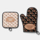 Stay safe in the kitchen for your baking and cooking this holiday season with on an oven mitt and pot holder featuring a Christmas themed gingerbread man, star, and candy cane cookie pattern with template text. Personalise the template text or edit using the design tool to select a font style, size, and colour you prefer.