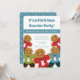 An invitation with a blue and white colour scheme and five, smiling, gingerbread men in Christmas sweaters. Customise the words, add this invite to your cart, and have a fun Christmas party!