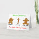 Cute funny gingerbread man design. The magic is in the baking powder. Three gingerbread figures, one with too much baking powder, one with too little and one that is just right. Card displays text, 'Merry Christmas' and 'The Magic of Baking Powder' which are customisable.