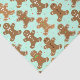 Festively decorated gingerbread men create a sweet pattern for Christmas gift giving. Shown here on gift wrapping tissue paper with a changeable mint green background colour. You can choose your favourite colour and adjust the size of the pattern. These gingerbread men would be great for wrapping holiday treats, decorating, and adding to gift bags.