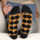 Festive Christmas socks featuring a colourful pattern of cute gingerbread men on a black background