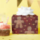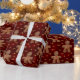This cute wrapping paper for Christmas features a festive pattern of gingerbread men. Around them are little golden baubles and stars, with a (faux) red velvet pattern beneath them. This very sweet and whimsical Christmas wrap could also be used for Christmas paper crafts, scrapbooking or decoupage for holiday projects, and would make a very suitable Christmas wrapping paper for kids' gifts.