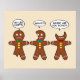 Funny gingerbread men in parody, spoof, to the bunny rabbits that says "My butt hurts". These 3 funny gingerbread men cookies with speech bubbles. The first gingerbread man has a bite on his leg and he says: "My Leg Hurts!", the other one has a bite on his ear and he says: "What?", the third one's eyes has been eaten and he says: "Where are you guys?". Especially fun for the Christmas Holiday Season. Cute Gingerbread man cartoon. The light beige/brown coloured background can be customised and changed to any colour.
