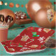 Festive Red Christmas paper plates that feature snowflakes, candy canes, gingerbread houses, bows, and Christmas stockings.