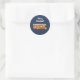 Add a special touch to Christmas cards, gifts and more with these stickers. They can be customised with your own message and feature a festive illustration of a gingerbread RV. This cookie camper is decorated with white icing and red and green candy. The graphic and white text appear against a navy blue background.