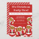 An invitation with a red and white colour scheme and five, smiling, gingerbread santas.