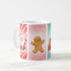 This festive and cheerful coffee mug features a delightful four-panel watercolor design perfect for the holiday season! Each side showcases a different classic Christmas icon: a jolly Santa Claus holding a candy cane against a red striped background, a cute smiling Gingerbread Man on a pink swirl pattern, a colourful stack of wrapped Gifts on a mint green background, and a cosy Snow Globe with a decorated Christmas tree set against a sparkling gold backdrop. It's the perfect way to enjoy your hot cocoa, coffee, or tea and spread holiday cheer! This mug makes an excellent gift for friends, family, or colleagues.