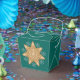 Festive gingerbread star cookie surrounded by snowflakes on cute Christmas favour boxes.