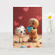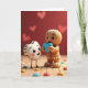 This sweet design features two adorable treats sharing a loving moment. A gingerbread man with white icing holds a bright blue heart and smiles warmly at a happy heart-shaped cookie. The cookie is white with chocolate stripes, rosy cheeks, and a joyful grin.