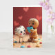 The background is deep red with soft heart-shaped lights, creating a cozy, romantic feel. The characters sit on a wooden surface sprinkled with colorful candies, adding a fun, festive touch. Warm lighting makes the treats look smooth and shiny, like little sculptures. This charming scene captures innocent love and is perfect for sharing Valentine’s Day affection❤️💌🍫.