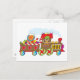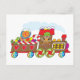 A gingerbread train with a smiling gingerbread engineer is loaded with candy canes, gum drops and lollipops and rushing towards the Christmas season.
