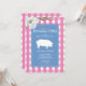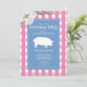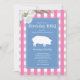 This rustic blue and pink birthday invitation features a charming picnic checkered tablecloth and pig design, accented with a painted watercolor flower and greenery. Your barbecue details are highlighted in a classic serif font in white. Easily personalize your template with party details and customize the colors by clicking on "Click to Customize." The trendy summer gingham pattern continues on the back of the invite, making it perfect for a women’s 30th, 50th, or any milestone birthday celebration. To explore more invitations, visit www.zazzle.com/vginvites.