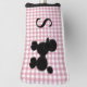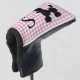 Cute lady's golf club cover done in a pink and white gingham pattern. Fun graphics of a fuzzy black poodle, decorates the cover. Personalise the black one letter monogram, to read what you want. Great gift idea. Matching driver cover is available.
