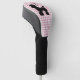 Cute lady's golf club cover done in a pink and white gingham pattern. Fun graphics of a fuzzy black poodle, decorates the middle of the cover. Personalise the black number to read what you want. Great gift idea. Chose either driver cover or putter cover.