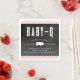 This baby shower napkin is perfect for a barbeque theme baby shower. The pink accents make it perfect for a baby girl. The gingham accents add a subtle softness to the otherwise traditional chalkboard style signage design. This is great for a mum or couples shower. Customising text is easy with the customise button located on the design page.