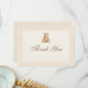 Sweet baby shower thank you card featuring a gingham pattern, teddy bear artwork, and a we can bearly wait theme. Designed to share heartfelt thanks with a warm, playful style that fits bear themed and neutral baby showers. Perfect for sending appreciation after the celebration. Fully customizable text with a clean, print-ready layout.