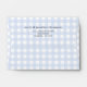 Gingham Blue Return Name Address in A6 size to coordinate with the SMALL BUDGET 4.5" x 5.6" invitations (NOT SUITABLE FOR THE LARGER 5.5 x8.5 size BUDGET SIZE) in this Baby Shower suite. PLEASE NOTE the envelope is slightly larger than the card itself. Easily personalise with your return name and address details on the back flap.