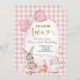 Gingham Blush Pink Floral Bow Bunny Tea Party Invitation