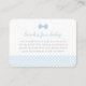 Designed to coordinate with the Lea Delaveris Design blue gingham baby shower collection, this invitation insert is perfect for special requests for baby shower guests. The sweet pink script "books for baby" text can be edited as can the request text below it. Works for a diaper raffle too! It also features a blue gingham pattern at the bottom and a blue polka dot pattern on the back that matches the bow tie on the front.