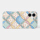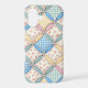 A seamless background featuring pastel gingham patterns and floral prints in a cathedral window quilt design