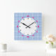 gingham check blue and white with hearts clock is perfect for a country home. This clock is based on traditional interior design found in homes all across America. This stylish and cute background will add a traditional touch to any room. . Brighten up your day with this artistic blue and white geometrical clock for a great art timepiece. Available in medium or large round clock or square clock.