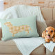 Gingham Dachshund Silhouette Pillow - Mint and Tan