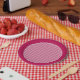 Gingham-Paper Party Plates-The tiny squares of gingham in an allover background pattern. The outer portion is a coordinating solid colour. The inner portion is the gingham pattern. Two rims are added in white. Gingham small print patterns are available in many assorted colours. Some products have a solid colour mixed with the gingham (like this one), others do not. Coordinating Zazzle party supplies and gifts are available. Choose any size or style of Zazzle paper plates available.