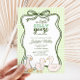Celebrate the arrival of a little one with this charming gender-neutral baby shower invitation! Featuring a playful “A Silly Goose Is Almost Here” theme, this design showcases adorable hand-drawn baby geese, a whimsical coquette-style bow border, and a soft green gingham background. Perfect for any baby shower, this sweet and stylish invite sets the tone for a joyful gathering with friends and family. Easily personalise the details to create a one-of-a-kind keepsake for the parents-to-be!