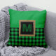 Gingham Green and Black Buffalo Plaid Monogram Cushion