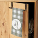 Classic gingham pattern with an initial monogram within a circle. Modern colours for your farmhouse kitchen.