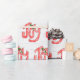 Cute snowman and red and white gingham JOY in fun font style on whitewashed wood with snowflakes.
