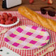 Cool Gingham or Chequerboard Pattern with trendy yellow and bright pink colours.