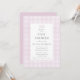 Celebrate your little one in style with this gingham pink bow baby shower invitation. Featuring a soft pink gingham chequered background with a delicate bow accent, this design is both sweet and preppy, perfect for honouring a baby girl.