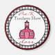 A magnet for teachers featuring the logo of The Pink Schoolhouse inside a circle shaped black gingham frame with red trim. Black and red text reads "Pre-K Teachers have class."