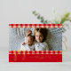 Gingham Rustic Farmhouse Red Beige Christmas Photo Foil Holiday Card