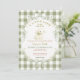 Gingham Sage Green Little Lamb Baby Shower Invitation