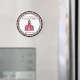 A magnet for teachers featuring the logo of The Pink Schoolhouse inside a circle shaped black gingham frame with red trim. Black and red text reads "Second Grade Teachers have class."