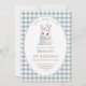 Celebrate a very special first birthday with this adorable Some Bunny Is One invitation, featuring a classic blue gingham pattern, a sweet bunny in a party hat, and a charming oval frame. Soft, playful, and full of personality, this design perfectly captures the joy and innocence of a one-year celebration while keeping a timeless, storybook feel.