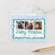 Gingham Wavy Blue Green Christmas Custom 3 Photo Holiday Postcard