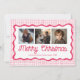 Gingham Wavy Pink Christmas Custom 3 Photo Holiday Card